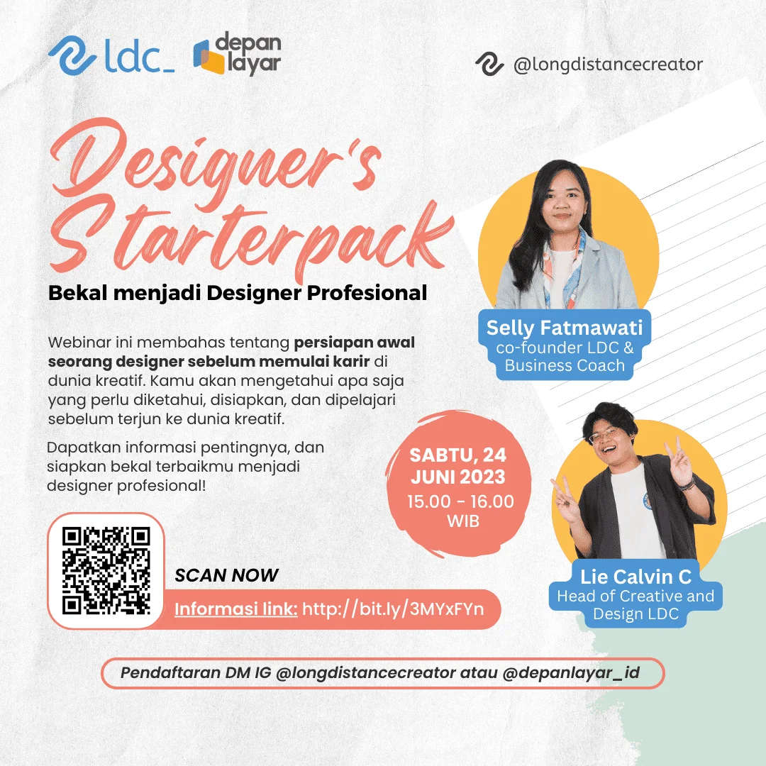 Webinar ini membahas tentang persiapan awal seorang designer sebelum memulai karir di dunia kreatif. Kamu akan mengetahui apa saja yang perlu diketahui, disiapkan, dan dipelajari sebelum terjun ke dunia kreatif.